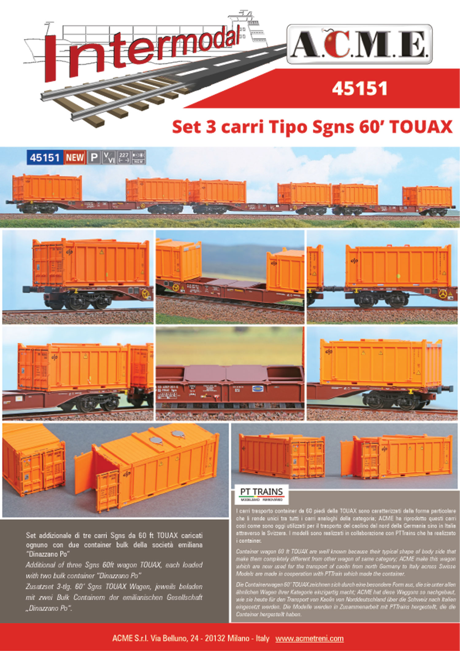 ACME H0 45151 - Set 3 Carri Tipo Sgns 60’ TOUAX Con 2 Container "Dinazzano Po" Ep. V-VI