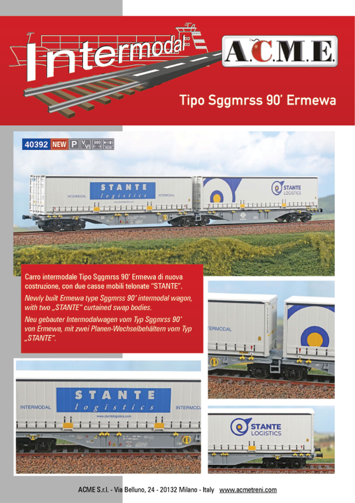 ACME H0 40392 Carro intermodale Tipo Sggmrss 90’ Ermewa, con due casse mobili telonate “STANTE” Ep. V-VI