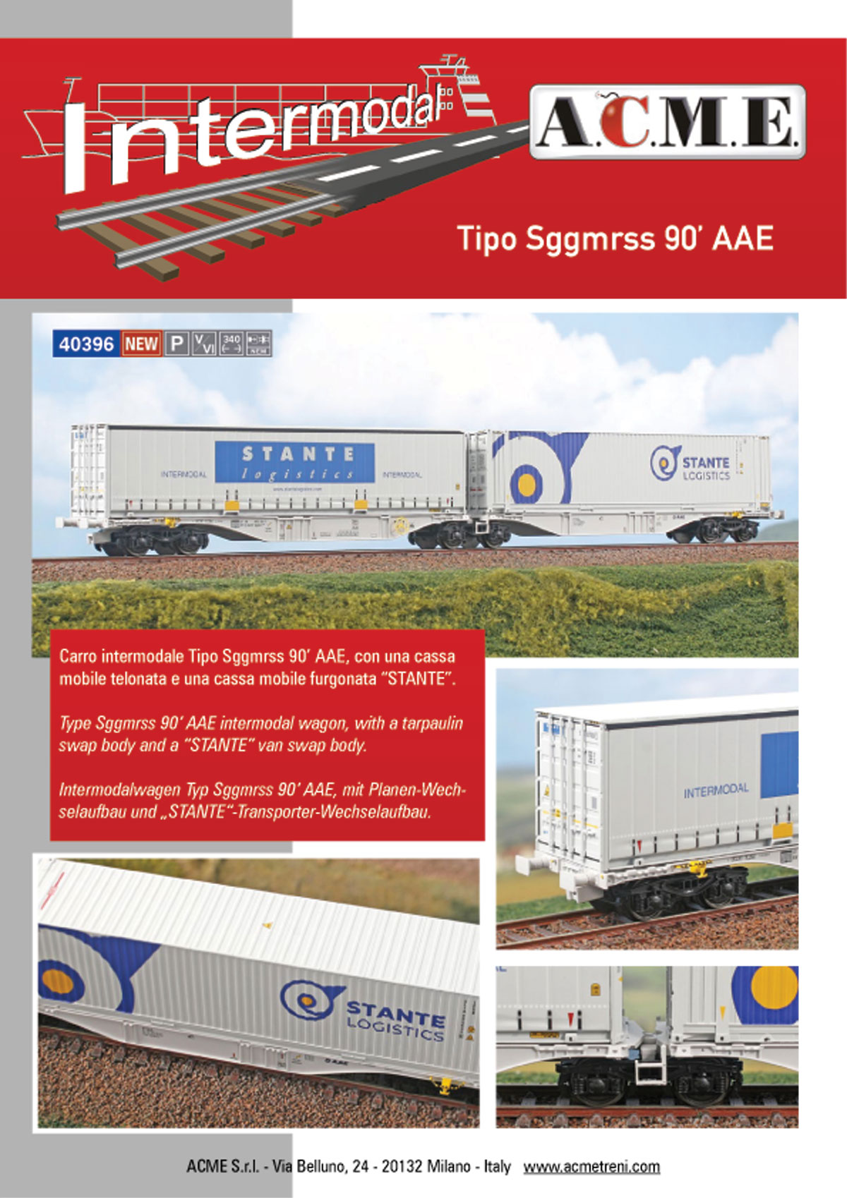ACME H0 40396 Carro intermodale Tipo Sggmrss 90’ AAE, con casse mobili “STANTE” ep. V-VI