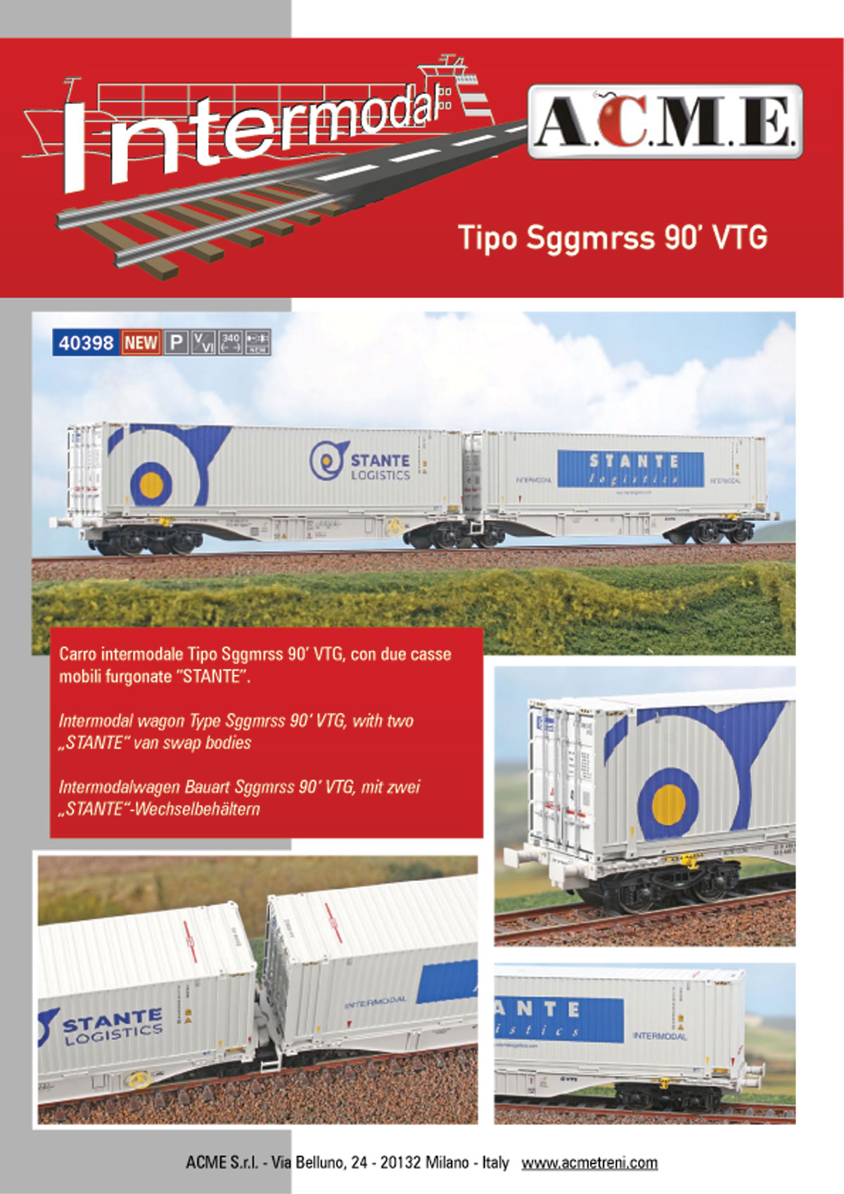 ACME H0 40398 - Carro intermodale Tipo Sggmrss 90’ VTG, con due casse mobili furgonate “STANTE” Ep. V-VI
