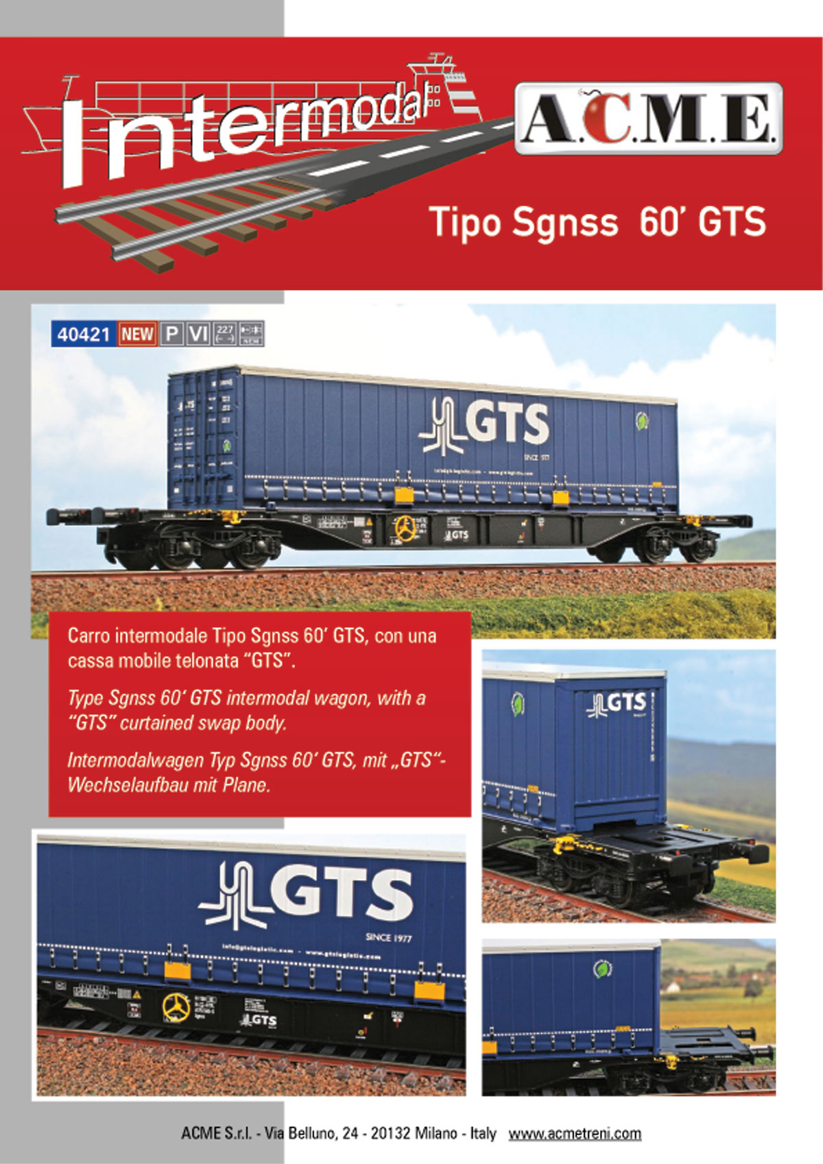 ACME H0 40421 Carro Tipo Sgnss 60’ GTS, cassa mobile telonata da 13,60 “GTS”. Ep. VI