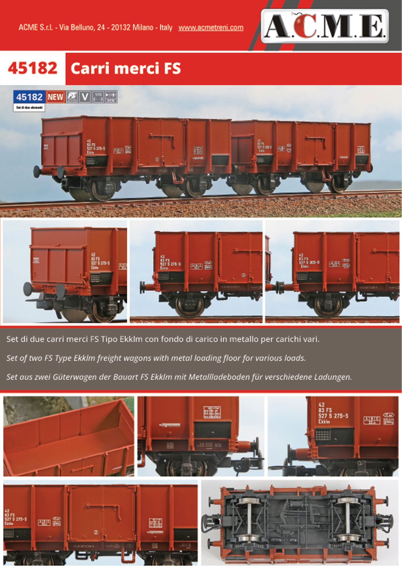 Set of two FS Type Ekklm freight wagons with metal loading floor for various loads.