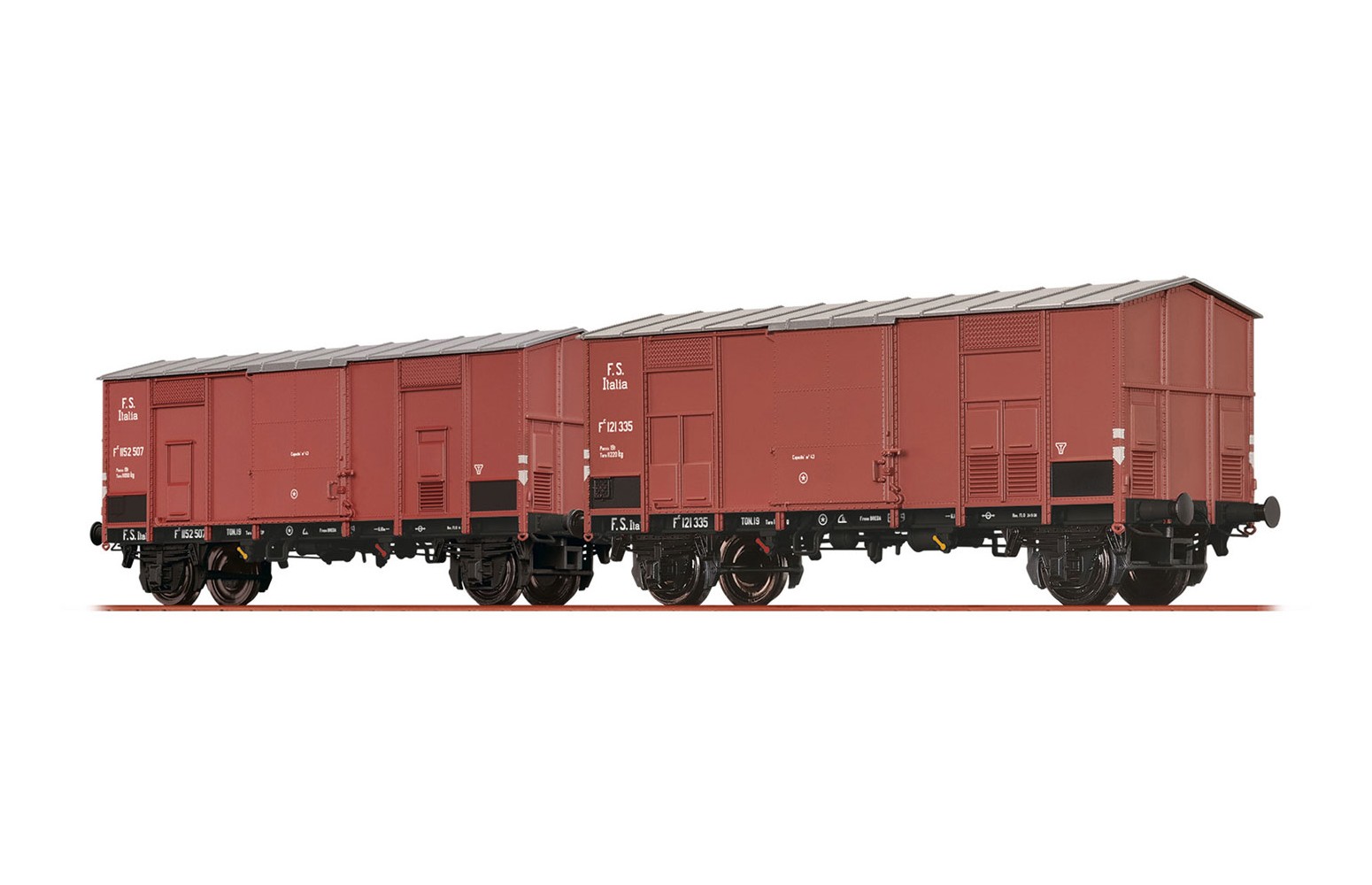 Set con 2 carri merci coperti a tetto spiovente tipo Fc