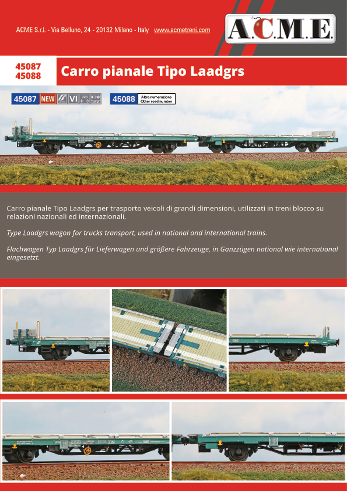 ACME H0 45087 - Carro pianale Tipo Laadgrs per trasporto veicoli di grandi dimensioni - FS ep. VI