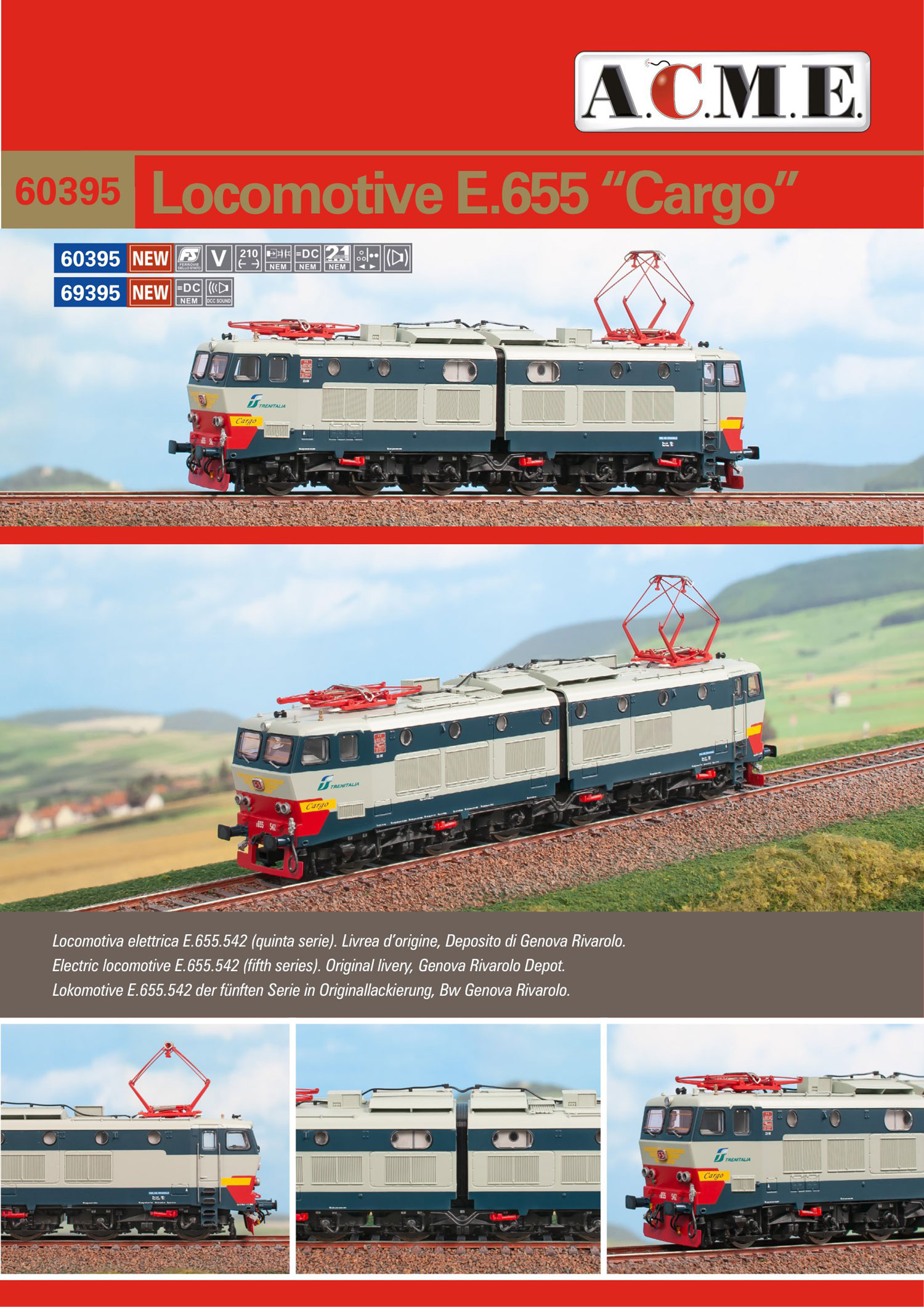 ACME H0 69395 Locomotore E.655.542 Livrea Origine Trenitalia Cargo, Sparti Neve Rossi, FS Ep. V *sound*