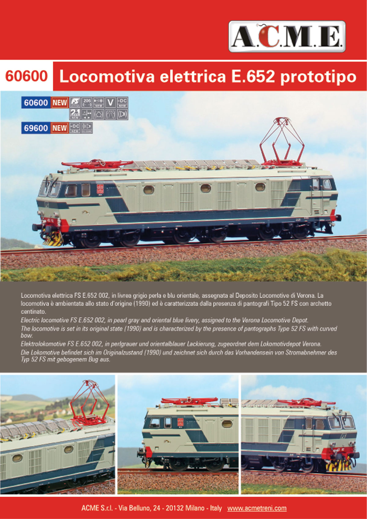 Locomotiva elettrica FS E.652 002, in livrea grigio perla e blu orientale,