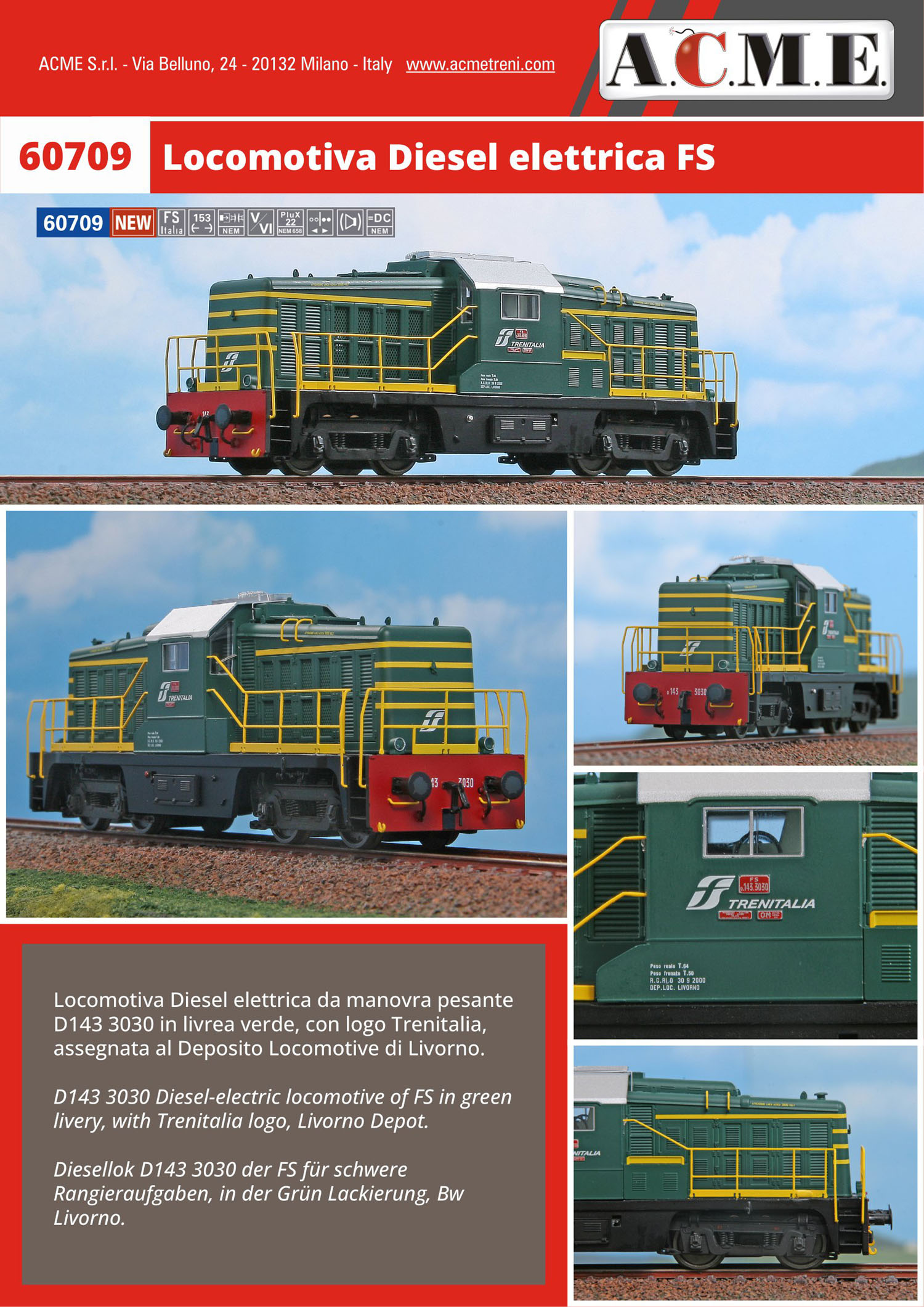Locomotiva Diesel Elettrica da manovra pesante D143 3030