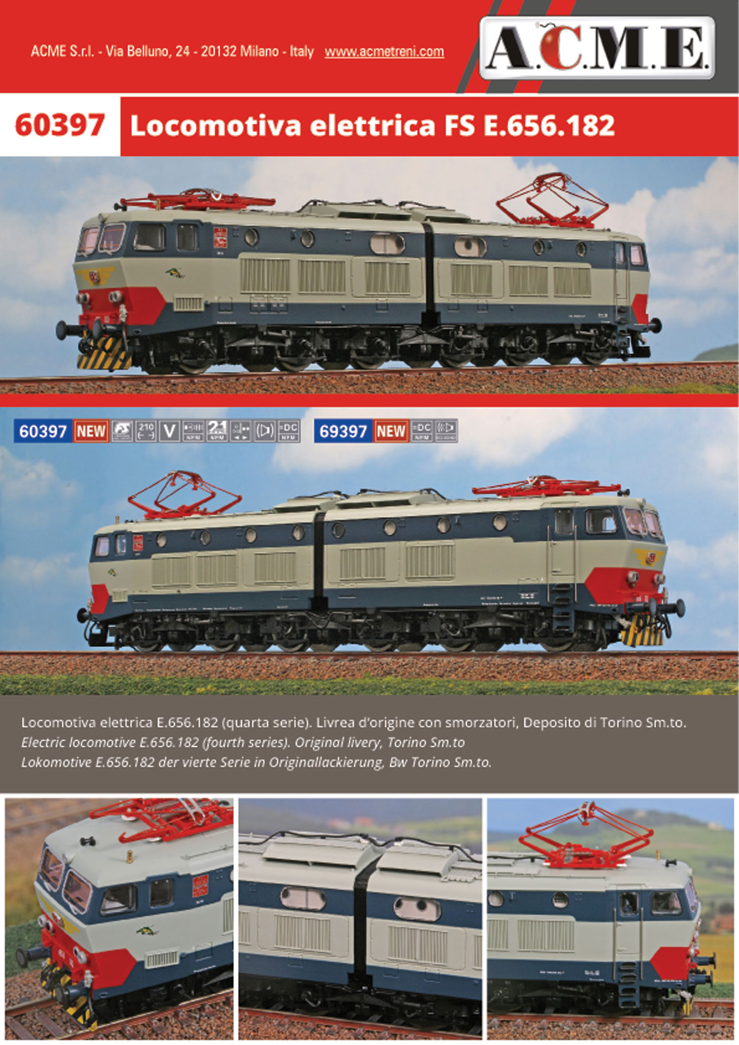 Locomotiva el. E.656.182 (IV serie). Livrea d’origine con smorzatori, Dep. Torino Sm.to