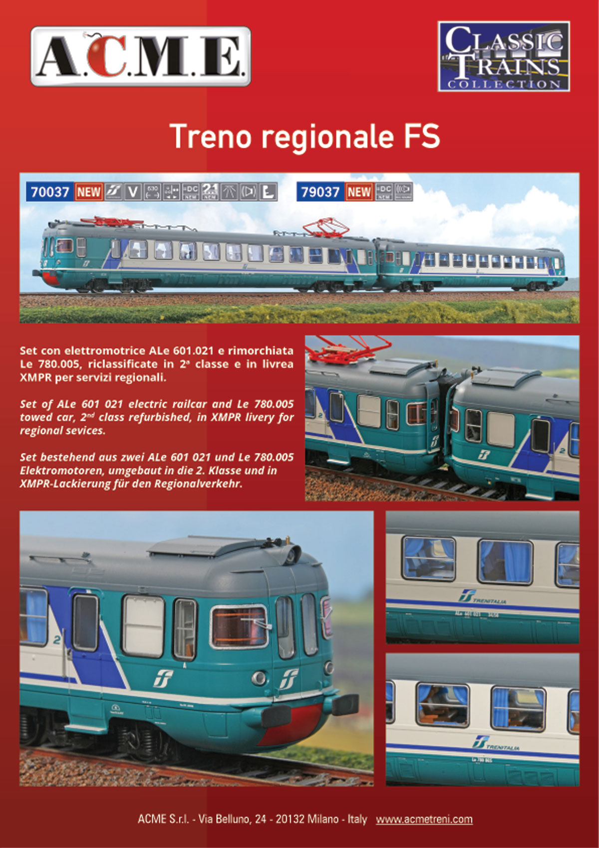 Set con elettromotrice ALe 601.021 e rimorchiata Le 780.005, riclassificate in 2a classe e in livrea XMPR per servizi regionali.
