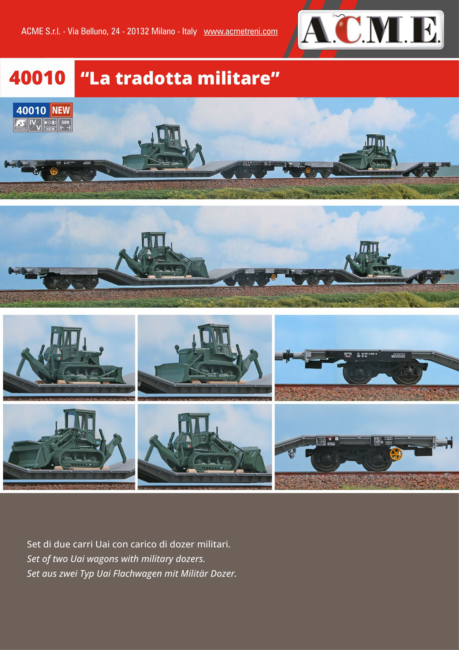 ACME H0 40010 Set con 2 carri Uai caricati con dozer militari - FS Ep. IV-V