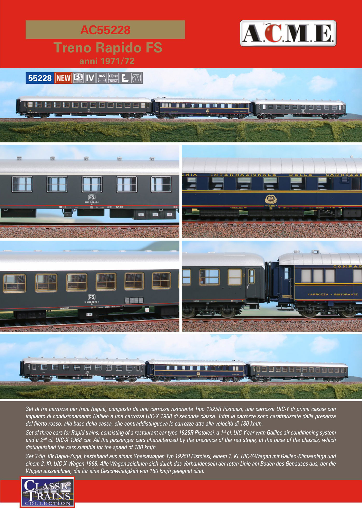 1 carrozza UIC-Y di 1a classe e 1 carrozza UIC-X di 2a classe, tutte con filetto rosso