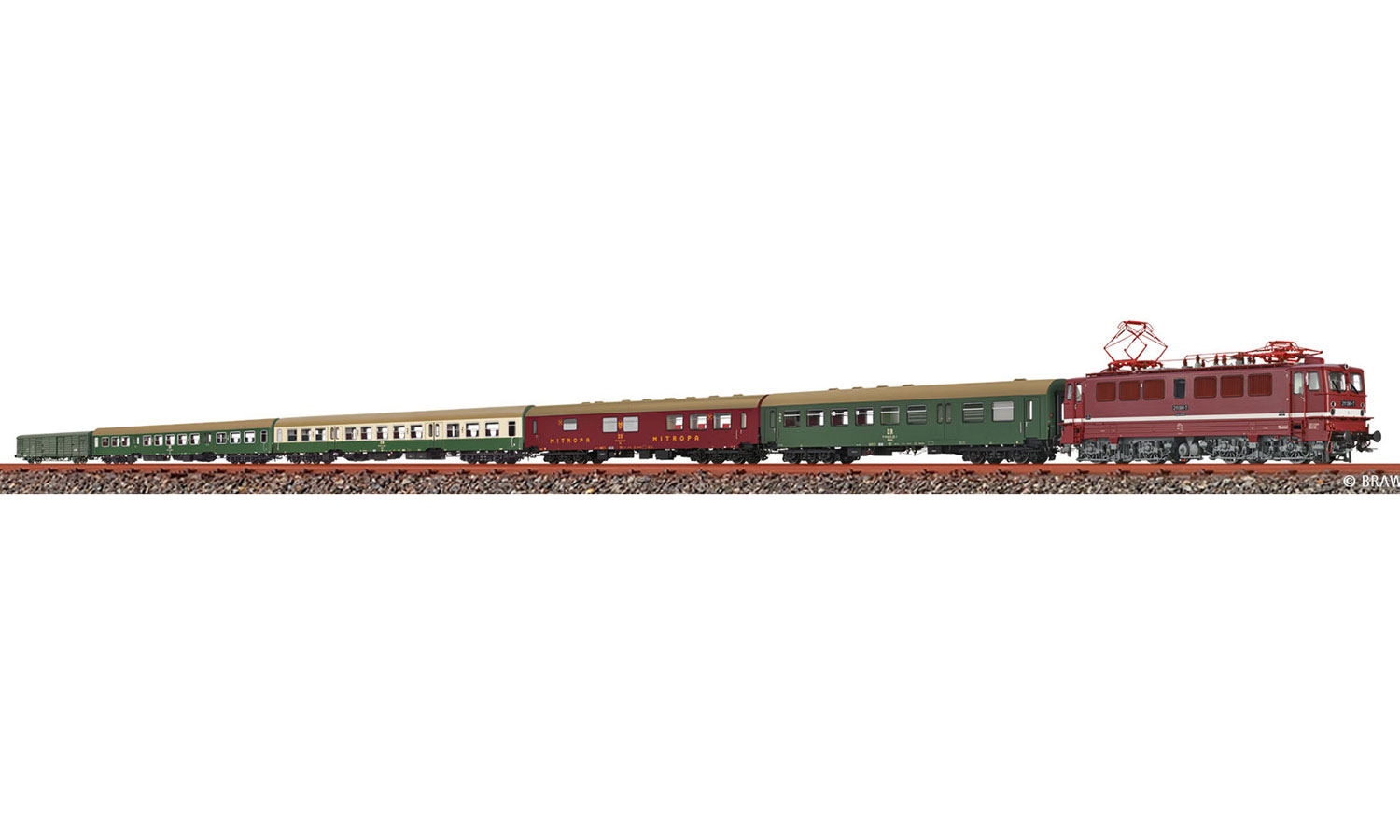 BRAWA H0 50892 - Set treno passante D 1050 (locomotiva BR 211 e 5 vagoni) DR ep. IV