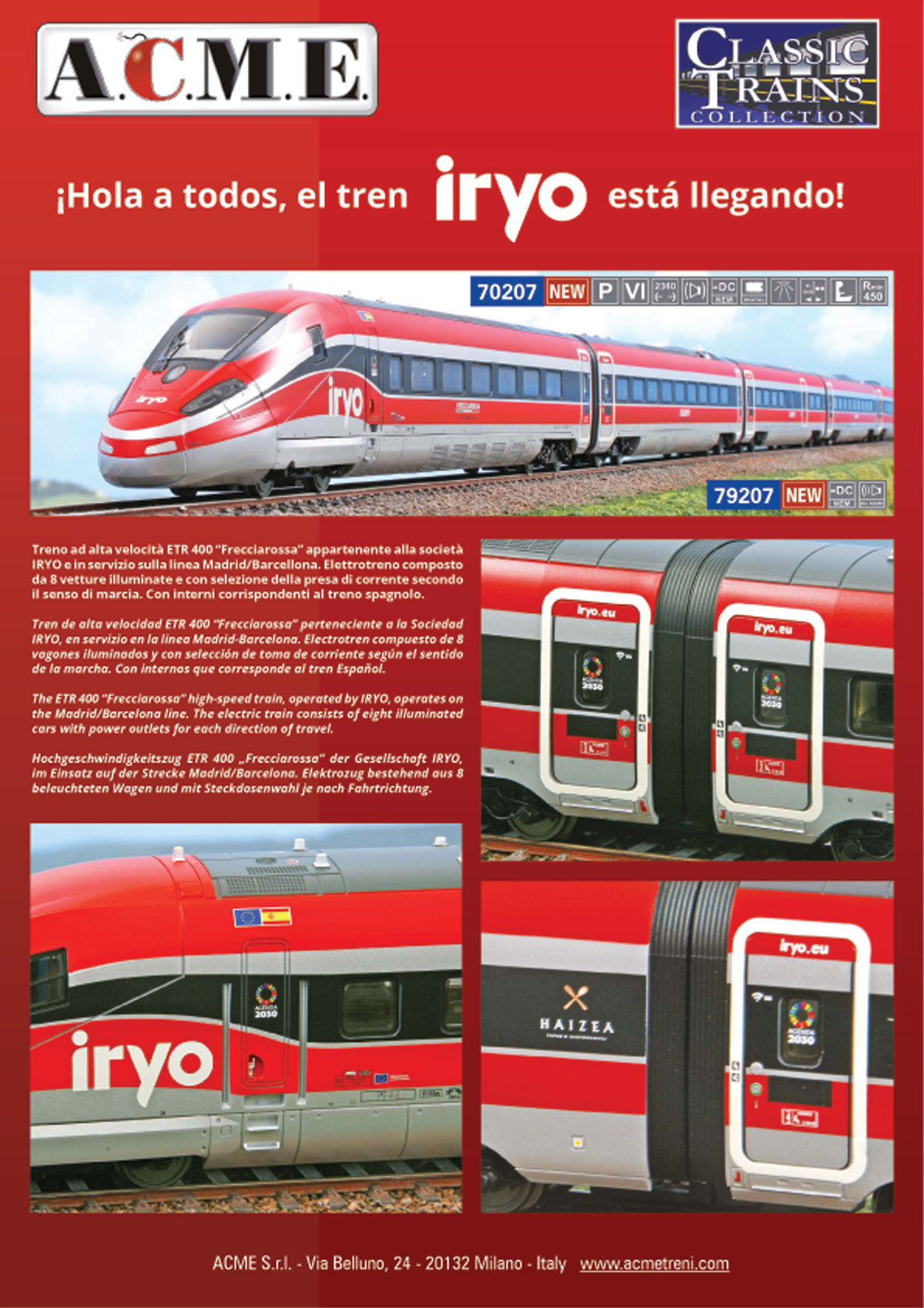 ACME H0 70207 Set 8 pezzi Frecciarossa 1000 "Iryo" con illuminazione
